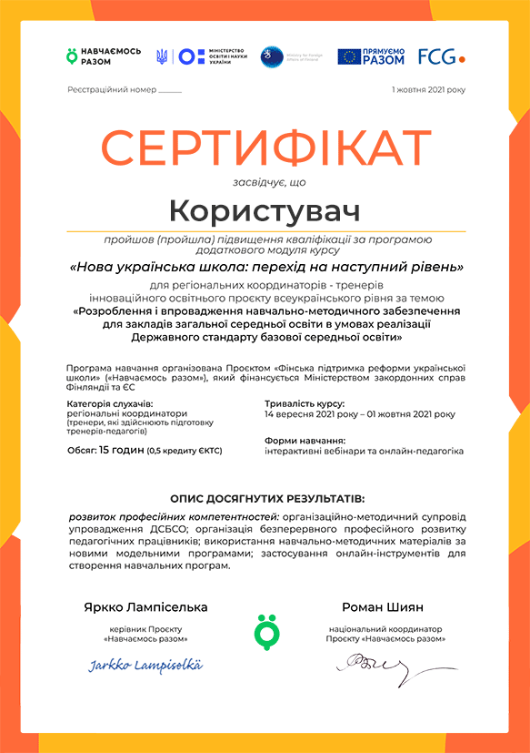 ОСІННЯ ШКОЛА ТВОРЦІВ СУЧАСНИХ ОСВІТНІХ МАТЕРІАЛІВ ДЛЯ НОВОЇ УКРАЇНСЬКОЇ ШКОЛИ